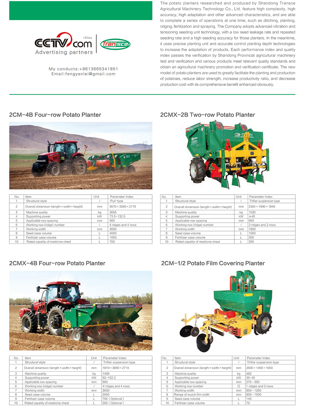 • In 2013, the new potato special planting machine production demonstration project won the Shandong Provincial Science and Technology Department results transformation funds;