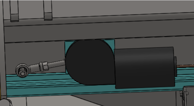 3. 前舱门的大小通过上面的旋转手柄来调节,旋转手柄带着方钢转动,方钢带动连接支板,连接支板与偏心轴套,轴套带着舱门。